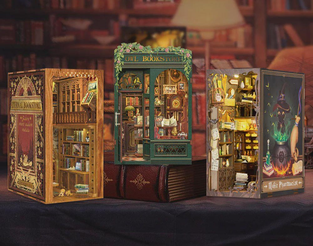 Nos produits sont conçus pour s’adapter à tous les niveaux d’expérience. Cependant, les Book Nooks et les puzzles 3D sont généralement plus accessibles aux débutants, grâce à des instructions détaillées et à un assemblage relativement simple. En revanche, certaines maisons miniatures peuvent être plus complexes et recommandées pour des utilisateurs ayant déjà une certaine expérience avec des modèles réduits, bien que des versions plus simples soient également disponibles pour les débutants. Quel que soit votre niveau, il y a un produit qui correspond à vos compétences !