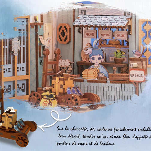 Au cœur d’un pavillon baigné de lumière, sous les lanternes dansantes, l’Azure Phoenix Lodge recueille lettres et souhaits dans une atmosphère de tendresse suspendue. Ici, chaque colis cache une promesse, chaque plume trace un espoir destiné à voyager au gré des cieux.