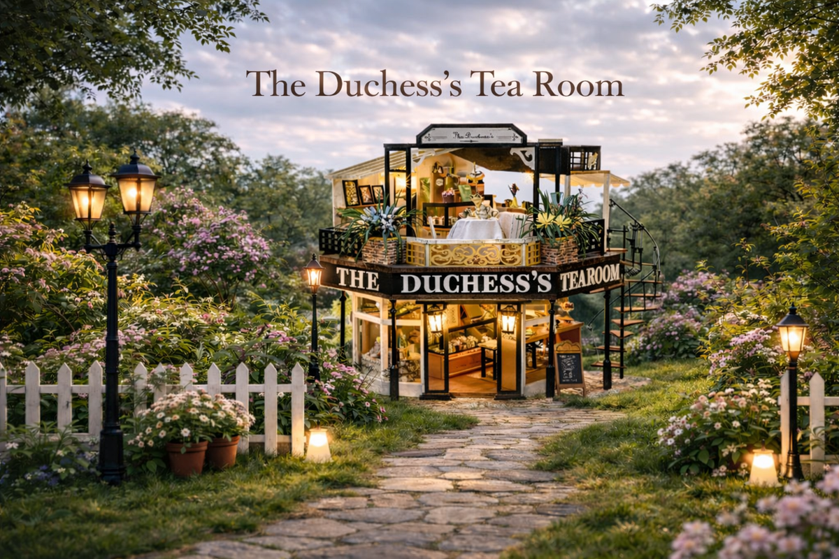 Entrez dans l’univers raffiné du Salon de Thé de la Duchesse , une maison miniature à assembler qui reproduit un salon de thé élégant sur deux étages. Avec sa terrasse fleurie, son escalier en colimaçon et ses petites tables délicatement dressées, chaque détail évoque le charme d’un véritable tea-room anglais.