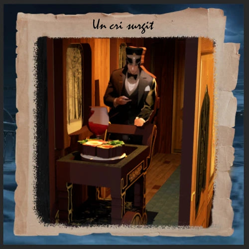 La pièce n’était autre que le compartiment du défunt. Le lit, orienté vers l’extérieur du wagon, attirait immédiatement l’attention. Posés dessus : un révolver délicatement ouvragé et une dague courte, tous deux sans traces apparentes d’utilisation directe. Étrangement, aucune blessure par balle n’était visible sur le corps, mais trois impacts nets marquaient le drap, comme si les projectiles s’étaient figés dans le vide. Le sang, lui, semblait plutôt provenir de profondes plaies infligées par la lame. Autre détail troublant : le désordre ambiant contrastait avec l’étrange ordre sous le lit, où reposaient soigneusement une paire de chaussures en cuir bien alignée et une petite boîte en bois finement sculptée. Tout cela semblait mis en scène… ou laissé là pour brouiller les pistes.